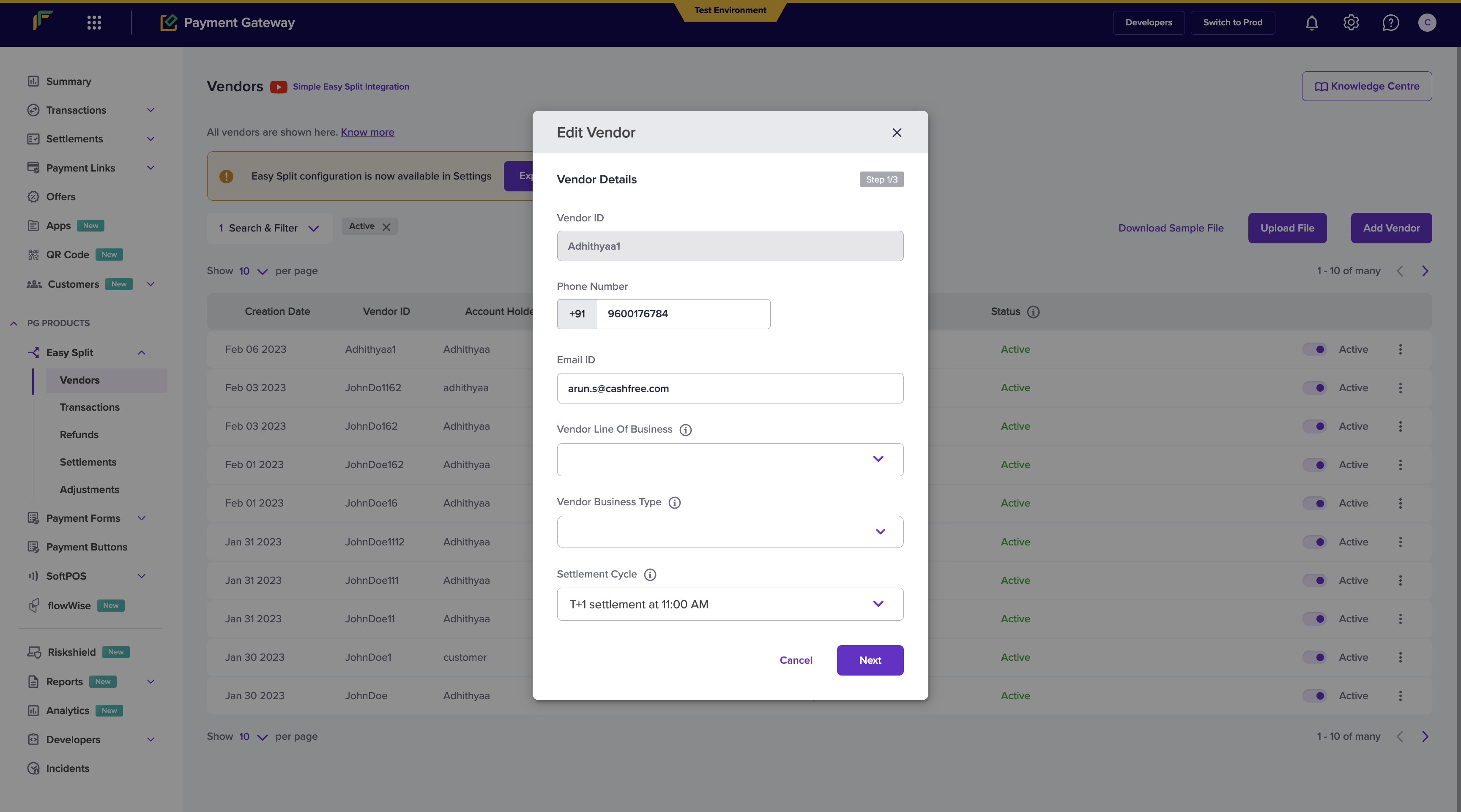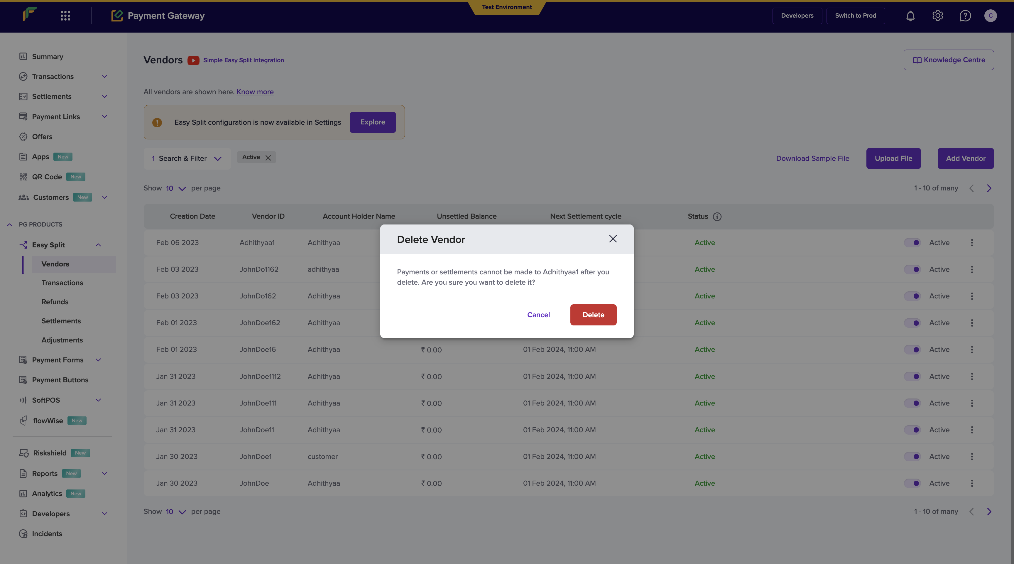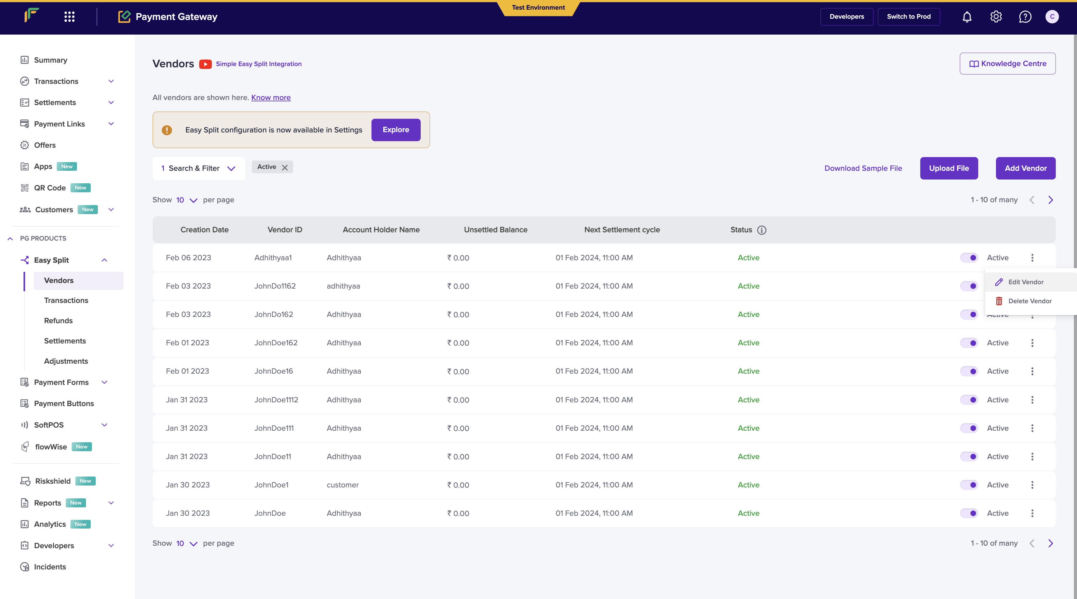 - Go to Payment Gateway Dashboard > Easy Split - Vendor.