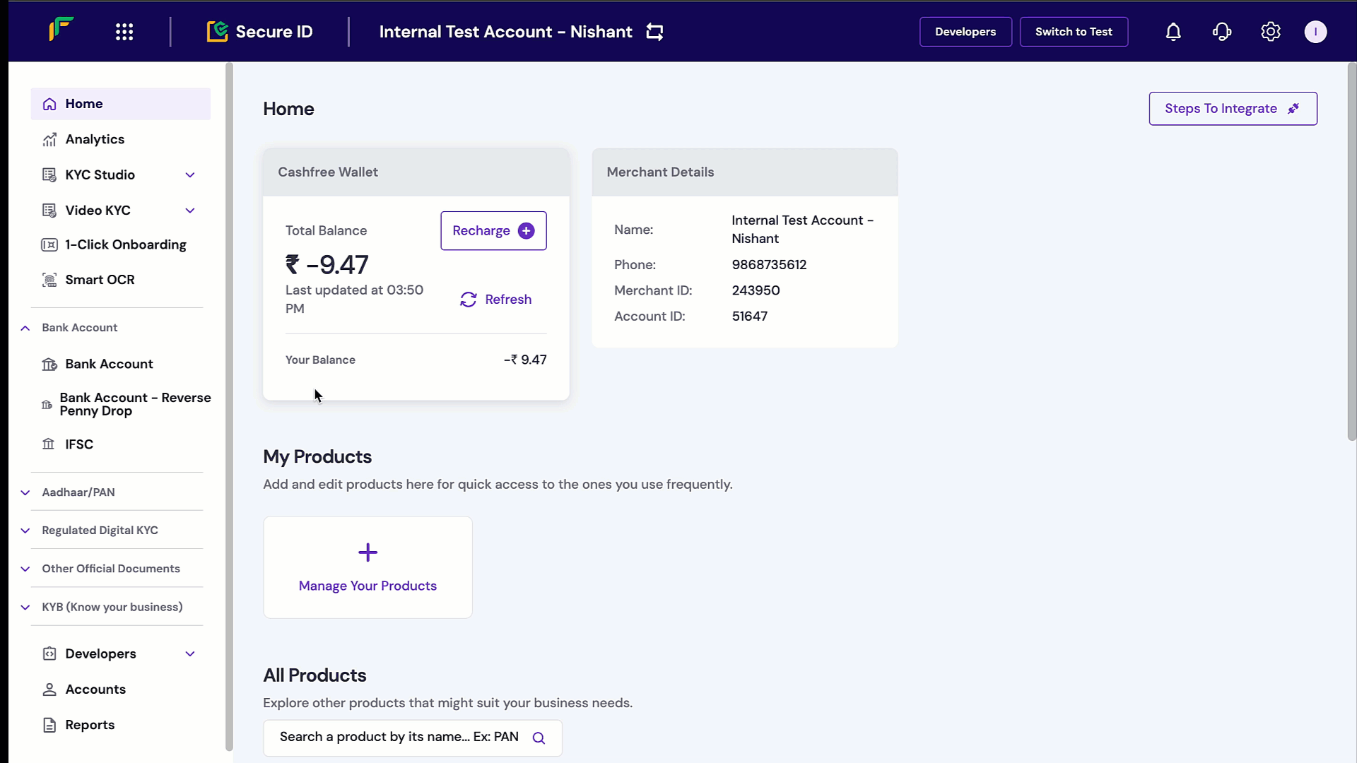 - Go to the Secure ID and select 1-Click Onboarding.